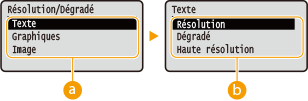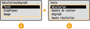 <Densité> 17 niveaux <Densité (Réglage fin)> <Élevée>/<Moyenne>/<Faible> 17 niveaux |