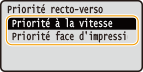 Sélectionnez <Priorité à la vitesse> ou <Priorité face d'impression>