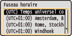 Sélectionnez le <Fuseau horaire> avant de régler la date et l'heure actuelles. Si plus tard vous changez le <Fuseau horaire>, la date et l'heure sont également modifiées en conséquence. |