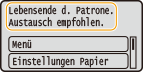 <Lebensende d. Patrone. Austausch empfohlen.>