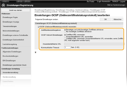 [Einstellungen OCSP (Onlinezertifikatstatusprotokoll)].