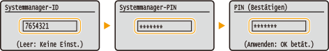 Konfigurieren von Einstellungen über Remote UIStarten Sie Remote UI, und melden Sie sich im Systemmanager-Modus an. Klicken Sie auf [Einstellungen/Registrierung] [Anwenderverwaltung] [Informationen Systemmanager] [Bearbeiten], und legen Sie die nötigen Einstellungen auf dem daraufhin angezeigten Bildschirm fest.Über Remote UI können Sie eine Vielzahl von Informationen registrieren, einschließlich Kontaktinformationen, Administratorkommentare, Aufstellort des Geräts sowie Einstellungen, die Sie über das Bedienfeld registrieren können. Die registrierten Informationen können auf der Seite [Geräteinformationen] von Remote UI eingesehen werden. Anzeigen der Systemmanager-Informationen Anmelden am GerätWenn Sie bei festgelegter Systemmanager-ID versuchen, auf Elemente zuzugreifen, die Administratorrechte erfordern, wie beispielsweise <Netzwerk> oder <Einstellungen Verwaltung>, wird der Anmeldebildschirm angezeigt. Anmelden am Gerät Sie müssen auch die Systemmanager-ID und PIN eingeben, um sich über Remote UI im Systemmanagermodus anzumelden. Starten von Remote UI |
