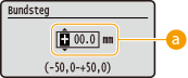 Legen Sie die Druckpositions-Versatzrichtung und die Versatzbreite fest. Ob der Einstellwert ein "+" oder "-" Wert ist, bestimmt die Bindekante, entlang der ein Binderand eingestellt werden soll. Sie können den Binderand in Einheiten von 0,5 mm einstellen.