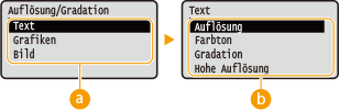 <Gradation>  <Auflösung> <Hohe Auflösung> |