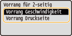 Wählen Sie <Vorrang Geschwindigkeit> oder <Vorrang Druckseite>