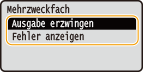Wählen Sie <Ausgabe erzwingen> oder <Fehler anzeigen>