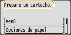 Este mensaje le informa de que muy pronto deberá sustituir un cartucho de tóner. Asegúrese de contar con un cartucho de tóner de sustitución. Sustituya el cartucho de tóner si visualiza este mensaje antes de comenzar a imprimir un trabajo grande. Aparece cuando <Acción cuando aparece una advertencia> está establecido en <Detener la impresión> (
