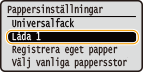 Om du ofta behöver byta papperstyp när du fyller på papper kan du ange <Fritt> för att spara tid genom att inte behöva ändra inställning varje gång. Notera dock att med den här inställningen görs utskrifter även när inställningen för papperstyp i skrivardrivrutinen inte stämmer överens med den papperstyp som har fyllts på i enheten.