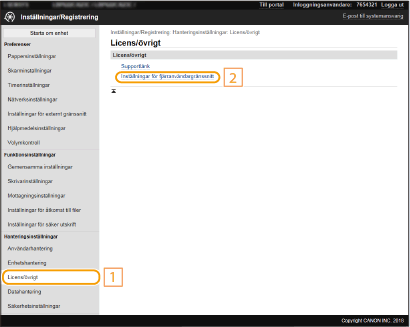 Mer information om grundläggande åtgärder som ska utföras för att konfigurera enheten från fjärranvändargränssnittet finns i Ställa in menyalternativ från Fjärranvändargränssnittet. |