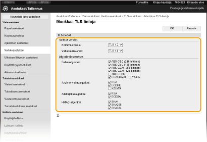 : ei käytettävissäAlgoritmi | TLS-versio | |||