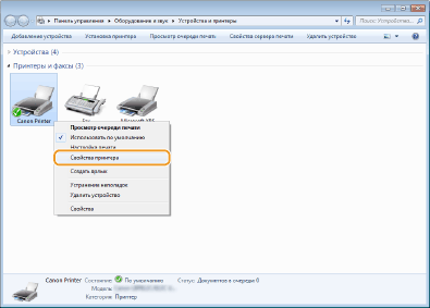 Щелкните правой кнопкой мыши значок драйвера принтера для этого аппарата и нажмите [Свойства принтера] или [Свойства].