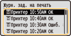 Если для параметра <Отображение журн. заданий> задано значение <Выключить>, проверка журналов печати недоступна. <Отображение журнала заданий> |