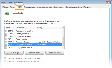 Если вы изменили IP-адрес аппарата или выбрали неправильный порт при установке драйверов, добавьте новый порт.