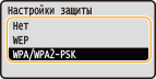 2 | Выберите метод шифрования. ![]() <Авто> Настраивает аппарат для автоматического выбора AES-CCMP или TKIP в соответствии с настройкой беспроводного маршрутизатора. <AES-CCMP> Устанавливает в качестве метода шифрования AES-CCMP. |