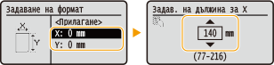 2 | Задайте дължината на страната <X> и на страната <Y>. |