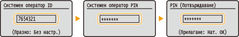 Конфигуриране на настройки чрез Remote UI (Потребителски интерфейс за отдалечено управление)Стартирайте Remote UI (Потребителски интерфейс за отдалечено управление) и влезте в режим на системен оператор. Щракнете върху [Settings/Registration] [User Management] [System Manager Information] [Edit] и задайте необходимите настройки на изведения екран.Чрез Remote UI (Потребителски интерфейс за отдалечено управление) можете да запаметявате различна информация, включително информация за контакти, коментари на администратор, местоположение на устройството, както и настройките, които можете да запаметявате чрез работния панел. Запаметената информация може да бъде преглеждана в страницата [Device Information] на Remote UI (Потребителски интерфейс за отдалечено управление). Проверка на информацията за системния оператор Влизане в устройствотоАко е зададен код на системен оператор и се опитате да осъществите достъп до настройки, които изискват администраторски права, например <Мрежа> и <Настройки за управление>, ще се изведе екранът за влизане. Влизане в устройството Трябва да въведете ID и PIN кода за системен оператор, за да влезете в режим на системен оператор в Remote UI (Потребителски интерфейс за отдалечено управление). Стартиране на Remote UI (Потребителски интерфейс за отдалечено управление) |