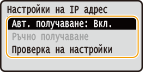 Автоматично присъединяване на IP адрес1 | Изберете <Авт. получаване>. |