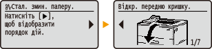 Повідомлення відображаються на екрані, якщо бракує паперу, завершується термін служби тонера в картриджі тощо. Для отримання додаткової інформації див. розділ «Усунення несправностей (FAQ)» на веб-сайті електронного посібника.
