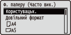 Якщо необхідно часто змінювати папір для завантаження, виберіть параметр <Довільний формат>; це зменшить кількість кроків, які необхідно виконати під час кожної зміни. Якщо встановлений у драйвері принтера параметр дуже відрізняється від формату паперу, що завантажується, можна відображати повідомлення про помилку.