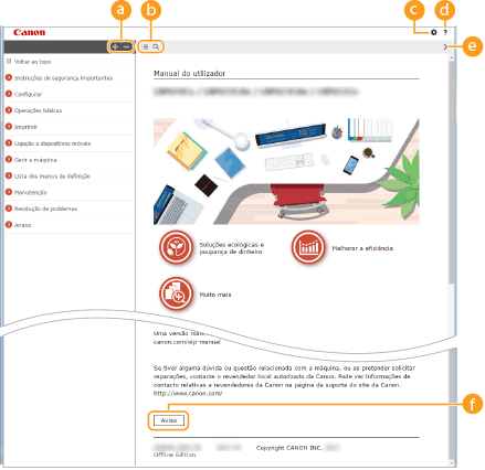 Clique aqui para visualizar informações sobre o Manual do utilizador, como efetuar uma pesquisa e outras informações.