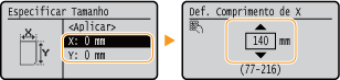 introduza a largura do papel ![]() ![]() <Y> introduza o comprimento do papel ![]() ![]()