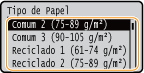 Se a definição de tipo de papel no controlador de impressora for [Automático], a máquina funciona da mesma forma que com o tipo [Papel liso 1].