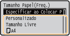 Se precisar de alterar frequentemente o papel colocado, defina a opção <Tamanho Livre>; isso reduzirá o número de passos necessários para alterar a definição de cada vez. Também é possível ver uma mensagem de erro quando a definição no controlador de impressora for significativamente diferente do tamanho do papel colocado.