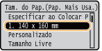 Os tamanhos de papel que são registados no procedimento acima são apresentados no ecrã de seleção de tamanho do papel da gaveta para papel e do tabuleiro multifunções.