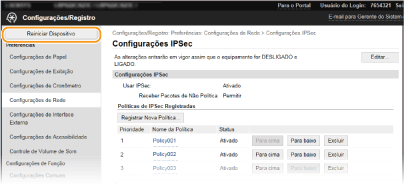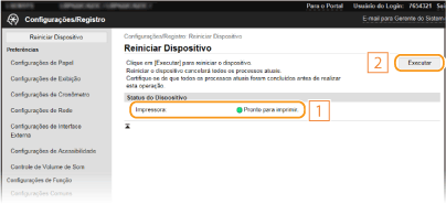 Verifique o [Status do Dispositivo] para se assegurar que não há funções em processamento e clique em [Executar].