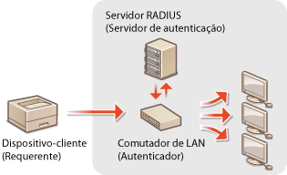 IEEE 802.1X é uma norma e um mecanismo utilizado para bloquear acesso não autorizado à rede através de uma gestão coletiva de dados de autenticação de utilizadores. Se um dispositivo tentar estabelecer ligação à rede 802.1X, o dispositivo tem de passar por uma autenticação de utilizador para provar que a ligação é feita por um utilizador autorizado. Os dados de autenticação são enviados e verificados por um servidor RADIUS, que permite ou rejeita a comunicação destinada à rede, dependendo do resultado da autenticação. Se a autenticação falhar, um comutador (ou um ponto de acesso) de LAN bloqueia o acesso proveniente do exterior da rede. A máquina pode estabelecer ligação a uma rede 802.1X como um dispositivo-cliente.