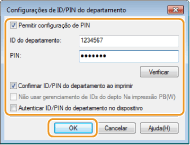 Selecione a caixa de verificação para ver o ecrã pop-up [Confirmar ID/PIN do departamento] sempre que enviar um trabalho a partir de um computador.