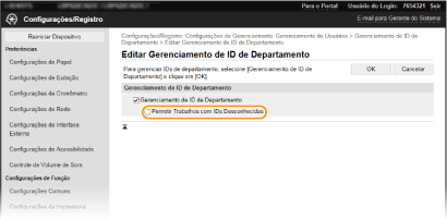 Selecione a caixa de verificação [Gerenciamento de ID de Departamento].