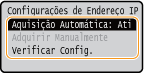 Selecione <Aquisição Automática> e defina <Selecionar Protocolo> e <IP Automático> para <Desativado>.