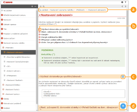 Kliknutím nastavíte parametry, které určují zobrazení například velikosti znaků nebo rozvržení dokumentu Uživatelská příručka.