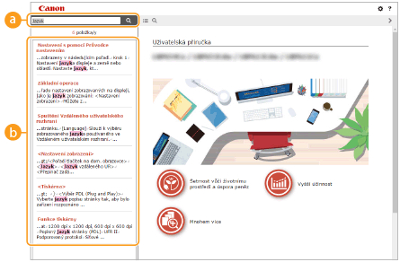 Kliknutím zobrazíte informace o zobrazení dokumentu Uživatelská příručka, jak v něm vyhledávat a další informace.