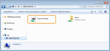 Zobrazení sdílených tiskáren na tiskovém serveru
