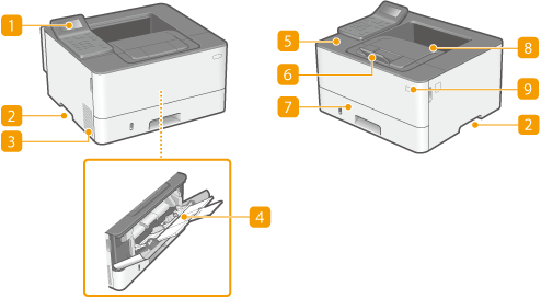 Na ovládacím panelu se nacházejí tlačítka, jako je tlačítko Domů, tlačítko Stop, displej a indikátory stavu. Prostřednictvím ovládacího panelu lze provádět všechny operace a nastavení.