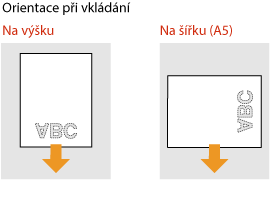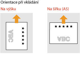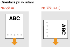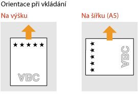 Tato část popisuje způsob vložení předtištěného papíru správnou stranou nahoru a ve správné orientaci. Popis obecného postupu pro vkládání papíru do zásuvky na papír nebo víceúčelové přihrádky naleznete v části Vkládání papíru do zásuvky na papír nebo Vkládání papíru do víceúčelové přihrádky.