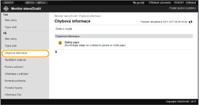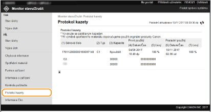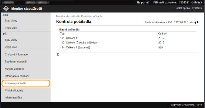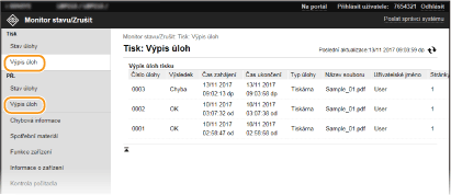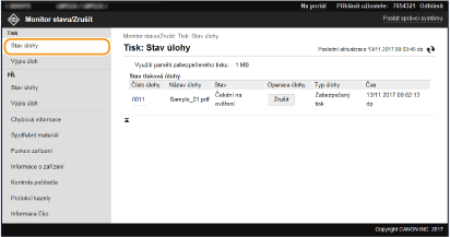 V seznamu budou uvedeny všechny právě tištěné dokumenty i dokumenty čekající na tisk, a to bez ohledu na nastavení správy ID oddělení.