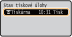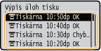 Když je volba <Zobrazit výpis úloh> nastavena na <Vypnuto>, protokoly tisku nelze kontrolovat. <Zobrazit výpis úloh>