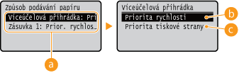 Vyberte <Priorita rychlosti> nebo <Priorita tiskové strany>