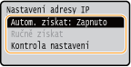 Zkontrolujte, zda je volba <Automatická adresa IP> nastavena na <Zapnuto>.