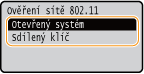 Nastaví se ověření typu Otevřený systém, nazývané také „otevřené ověřování“.