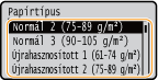 Ha a papír behelyezésekor nem jelenik meg a fenti képernyőHa mindig ugyanolyan papírt helyez a többfunkciós tálcába, akkor elhagyhatja a papírbeállítási műveleteket, ha a papírméretet és -típust bejegyzi alapértelmezett beállításként. Ha az alapértelmezett beállítás be van jegyezve, akkor viszont a fenti képernyő nem jelenik meg. A képernyő megjelenítéséhez válassza a következőt: <Megadás a papír betöltésekor> (A többcélú tálca alapértelmezett papírméretének bejegyzése).