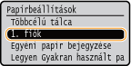 Ha fel van helyezve a külön megvásárolható cassette feeding module, akkor annak papírtálcája is megjelenik.
