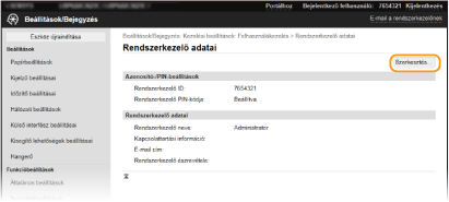 Néhány beállítás csak akkor módosítható, ha rendszerkezelői módban jelentkezik be.