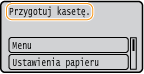 Jeżeli komunikat zostanie wyświetlony podczas odbierania I-faksu, urządzenie nie wykona drukowania w celu zapobieżenia uzyskaniu niewyraźnego wydruku. Zamiast tego, odebrane dane zostaną zapisane w pamięci. Aby kontynuować drukowanie pomimo niskiego poziomu toneru w zasobniku, dla opcji <Kontynuuj druk., gdy mało atram. w kas.> wybierz ustawienie <Włącz>. <Kontynuuj druk., gdy mało atram. w kas.>