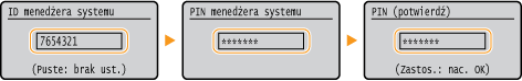 Logowanie się w urządzeniuJeżeli chcesz uzyskać dostęp do elementów wymagających uprawnień administratora, np. <Sieć> czy <Ustawienia zarządzania>, a identyfikator menedżera systemu został wcześniej skonfigurowany, zostanie wyświetlony ekran logowania. Logowanie się do urządzenia