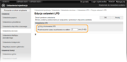 Zaznaczenie tego pola wyboru umożliwia wydruk za pomocą protokołu LPD. Jeśli drukowanie za pomocą protokołu LPD nie jest używane, należy usunąć zaznaczenie tego pola wyboru. [Użyj wydruku RAW]
