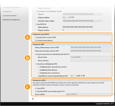 To pole wyboru należy zaznaczyć w celu korzystania z takiej samej nazwy mDNS jak w przypadku protokołu IPv4. Aby ustalić inną nazwę, należy usunąć zaznaczenie tego pola i wprowadzić nazwę mDNS w polu tekstowym [Nazwa mDNS]. |